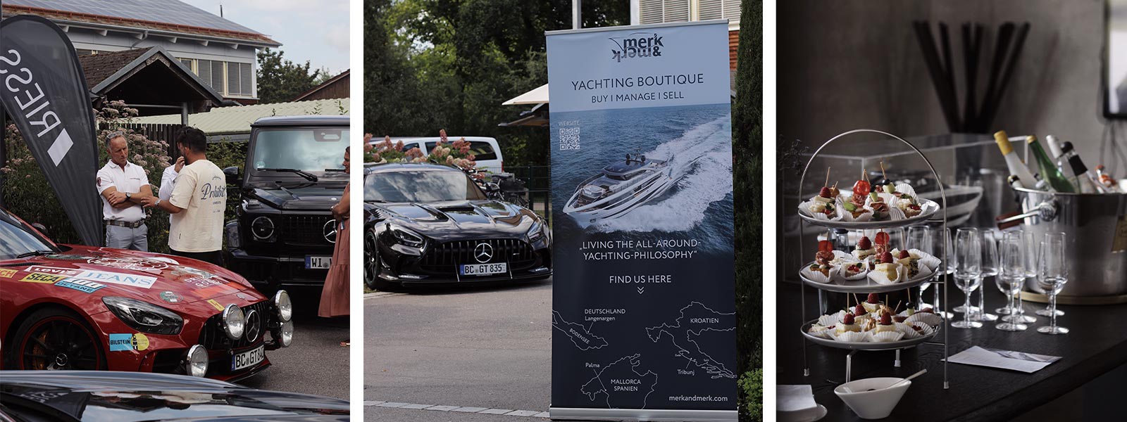 Doch nicht nur auf dem Wasser und in der Immobilienwelt gab es viel zu entdecken. Der Mercedes-Händler Riess aus Ravensburg beeindruckte mit einer Auswahl an hochkarätigen Fahrzeugen. Zu den ausgestellten Modellen zählten der imposante Mercedes-AMG G 63, der elegante GLE 53 AMG, der sportliche CLE 53 AMG und der atemberaubende SL63 AMG. Jedes dieser Fahrzeuge verkörperte Luxus, Leistung und modernste Technologie. Die Besucher hatten die Gelegenheit, sich aus erster Hand von der Qualität dieser Modelle zu überzeugen.